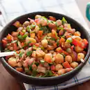 Spiced chickpeas tossed with onions, tomatoes, and tangy seasoning for a flavourful, chatpata bowl by Hey Salad.
