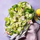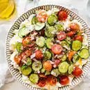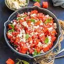 Juicy watermelon paired with salty feta, fresh mint, and citrus dressing for a refreshing sweet–salty mix by Hey Salad.