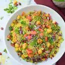 Crunchy sprouts tossed with tangy chutneys and spices for a lively, chaat-style salad by Hey Salad.