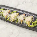 Melted cheese and chilli flakes layered on toasted bread for a spicy, cheesy crunch by Hey Salad.