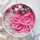 Strawberry and berry blend forming a vibrant pink bowl with clean, refreshing flavours by Hey Salad.
