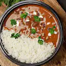 Slow-cooked kidney beans in spiced gravy paired with fluffy rice for a classic North Indian comfort meal by Oye Hoye Parathas.