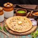 A comforting blend of mashed potato and cheese filled inside a warm paratha, served with pickle and butter, with an option to add Chole Chana or Dal Makhani by Oye Hoye Parathas.