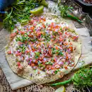 Crispy papad topped with onions, tomatoes, and tangy spices for a fresh and flavourful bite by Oye Hoye Parathas.