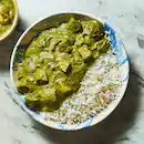 Fresh spinach and soft paneer cubes served over warm rice, creating a wholesome and flavourful meal by Oye Hoye Parathas.